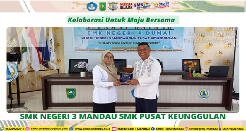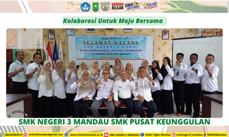 Bathin Solapan – SMKN 3 Mandau SMK Pusat Keunggulan terus berinovasi dalam meningkatkan kualitas pendidikan. Pada tanggal 25 September 2024, sekolah ini menggelar kegiatan dengan SMKN 4 Dumai yang bertema "Kolaborasi Maju untuk Bersama." Kegiatan ini diadakan di SMKN 3 Mandau dan bertujuan untuk mempererat hubungan antara kedua sekolah vokasi unggulan di Riau.