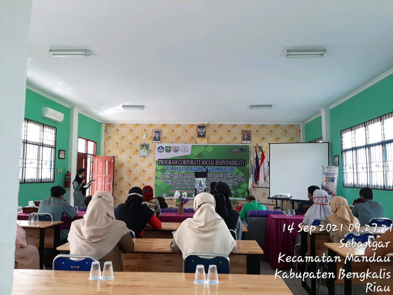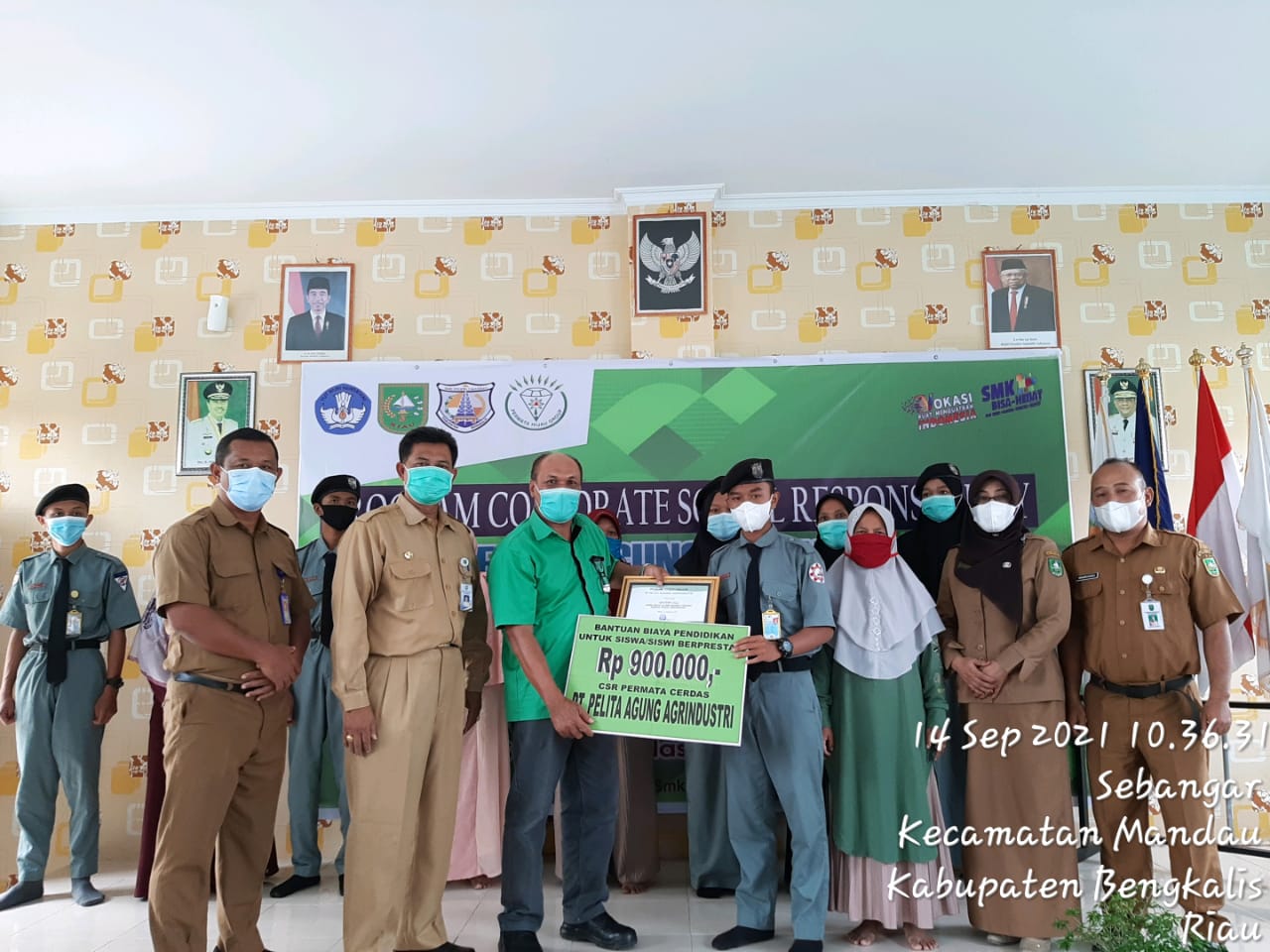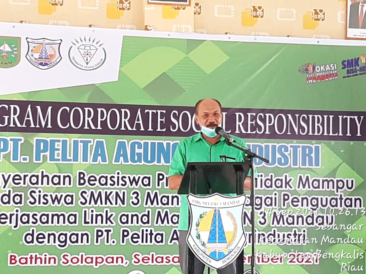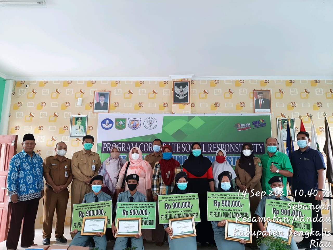 Penyerahan Beasiswa Prestasi dan Tidak Mampu Program Corporate Social Responsibility (CSR) dari PT. Pelita Agung Agrindustri untuk Siswa/i SMK Negeri 3 Mandau