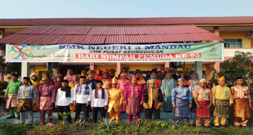 SMKN 3 MANDAU ; Sumpah pemuda merupakan manifestasi atau perwujudan semangat persatuan nasional yang mendorong tercapainya kemerdekaan bangsa kebulatan tekad yang mencerminkan rasa cinta pemuda kepada tanah air dan bangsanya. Sumpah pemuda merupakan tonggak sejarah pergerakan para pemuda Indonesia dalam perjuangan bersama melawan penjajah hal ini menjadi sarana untuk mempersatukan seluruh organisasi kepemudaan dan para pemuda Indonesia, yang awalnya bercorak kedaerahan menjadi berjiwa nasionalis yang memberi arah baru dan membangkikan semangat kebangsaan dalam menentang penjajahan.Sumpah pemuda merupakan komitmen perjuangan rakyat sampai berhasil mencapai Proklamasi Kemerdekaan Republik Indonesia.